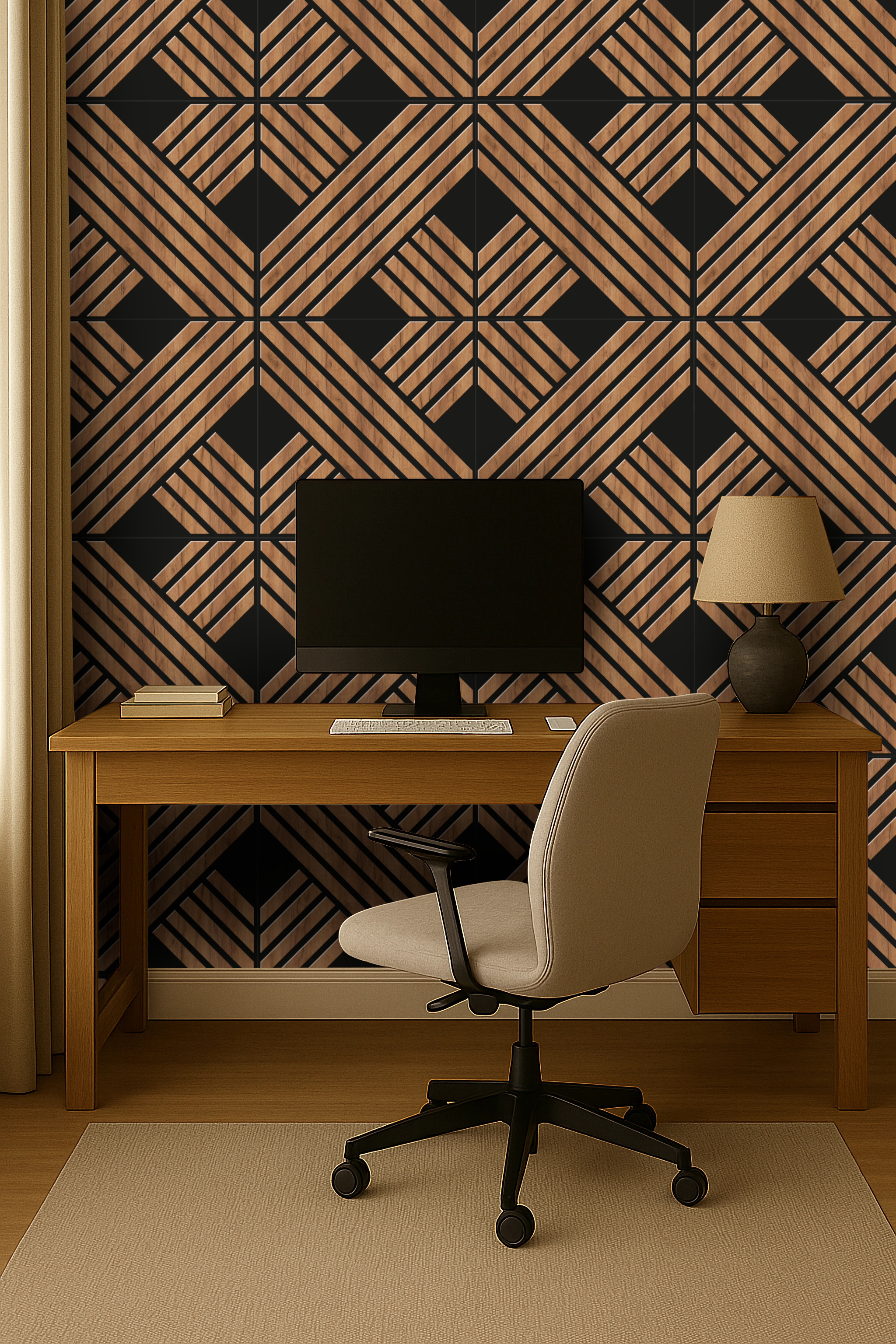 3D Wall Panel Oak Pattern on Black Background