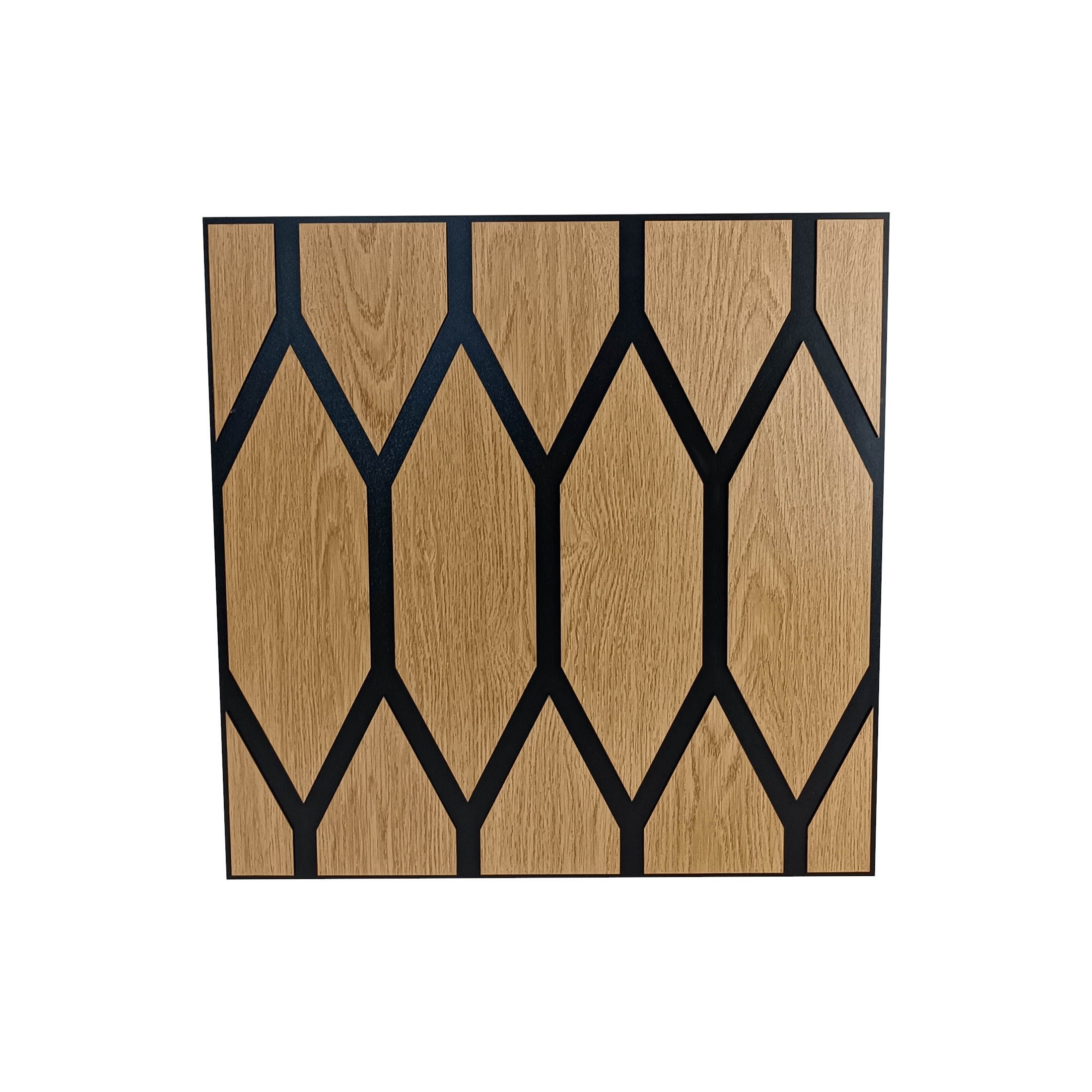 Modern oak 3D wall panels with black backing featuring bold geometric diamond design for striking accent walls